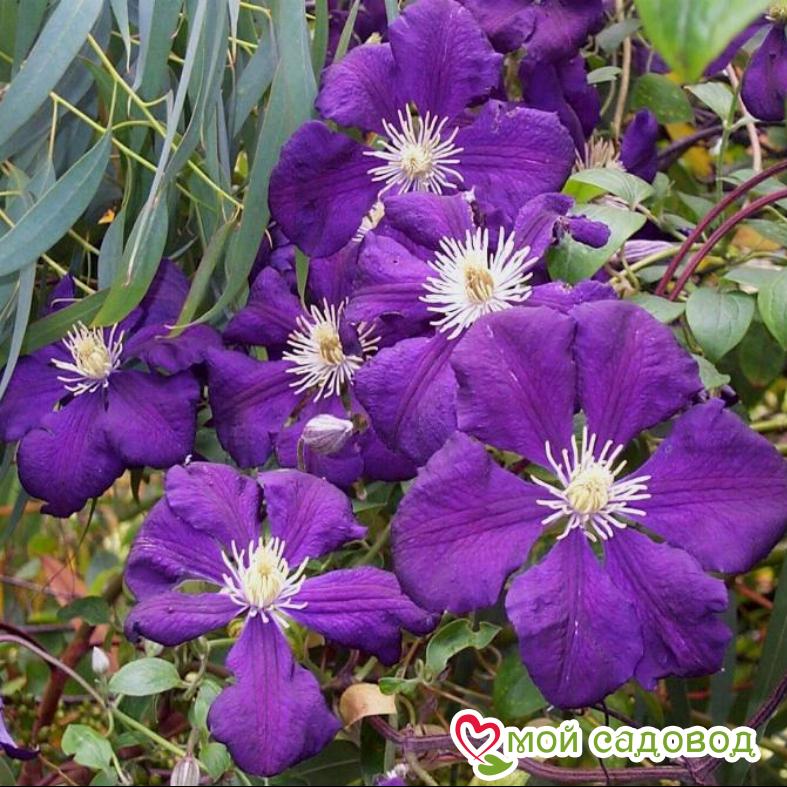 Этот сорт малотребовательный и очень выносливый. С посадкой и выращиванием многолетника справится даже начинающий цветовод. Купить здоровый и жизнеспособный посадочный материал можно в нашем интернет-магазине. Как выглядит растение? В высоту лиана достигает 4 м. Побеги прочные и активно растущие. Цветение довольно обильное. Начинается этот период в июне и заканчивается в сентябре. Цветки яркие, одноцветные. Лепестки окрашены в темно-фиолетовый цвет. В полном роспуске диаметр цветка равен 10 см. Тычинки желтые. Применение в ландшафтном дизайне Блю Белль украсит любую беседку, арку и вертикальную опору в саду. Многолетник хорошо выглядит в групповой посадке. Это прекрасное дополнение для лиственного дерева или хвойного кустарника. Как вариант, можно посадить клематис на клумбу с белыми цветами. Некоторым нравится украшать лианой веранду, лоджию, стены дома и террасы. Советы по посадке и выращиванию Рассматриваемая декоративная культура любит солнечные места с защитой от холодных сквозняков. Грунт подойдет плодородный, воздухопроницаемый, суглинистый. Пересаживать приобретенные в питомнике растения рекомендуется весной. Сначала выкапывают небольшие лунки (50 х 50 см). Далее отправляют внутрь саженец и аккуратно расправляют корни. Сверху их присыпают плодородной почвосмесью и щедро поливают. Землю под кустом укрывают кусочками коры. Полив проводят 3 – 4 раза в неделю. Когда многолетник приживется, можно реже устраивать водные процедуры. Удобрения используют до 4 раз за сезон. На зиму укрывать саженцы не обязательно. Разве что в регионах с суровым климатом. Положительные качества клематиса Блю Белль У данного сорта много хороших качеств: крепкий иммунитет; доступная цена; хорошая морозоустойчивость; тонкий и ненавязчивый аромат; универсальность в применении; неприхотливость в уходе. Купить недорого клематисы можно в интернет-магазине «Мой садовод». Просто отправьте понравившийся сорт в корзину, нажав на соответствующую кнопку. Мы бережно упакуем и максимально быстро доставим Вашу покупку ТК СДЭК или почтой России. Если возникнут вопросы или сложности с оформлением заказа, наши консультанты предоставят квалифицированную помощь. Мы гарантируем высокое качество посадочного материала и дорожим мнением каждого покупателя!